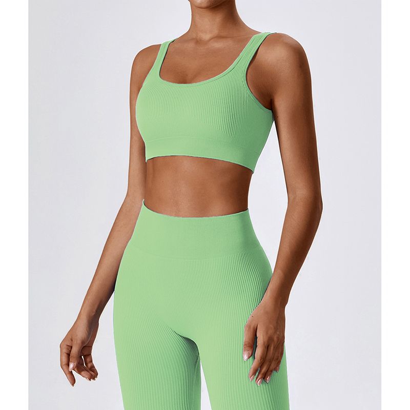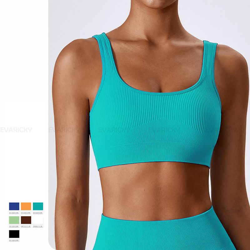 OEM de cor sólida Mulheres fitness xícaras removíveis de academia em branco Crop Yoga Top. Bra esportivo de pescoço quadrado com nervuras de alta qualidade para mulheres.